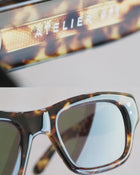 Rectangular shape in japanese acetate with our signature rounded square rivets. Seven barrel hinges. base 4 zeiss lenses with a laser-printed logo.